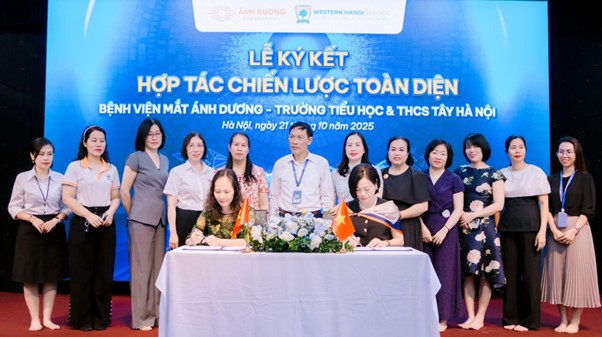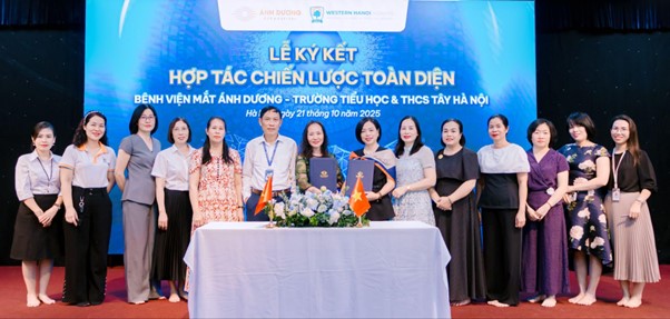 Ngày 21/10/2025, tại Trường Tiểu học & THCS Tây Hà Nội (WHS), Bệnh viện Mắt Ánh Dương và Trường Tiểu học & THCS Tây Hà Nội đã chính thức ký kết biên bản hợp tác trong công tác chăm sóc và bảo vệ thị lực học đường cho học sinh, hướng đến mục tiêu “Sáng mắt – Sáng trí – Sáng tương lai”.