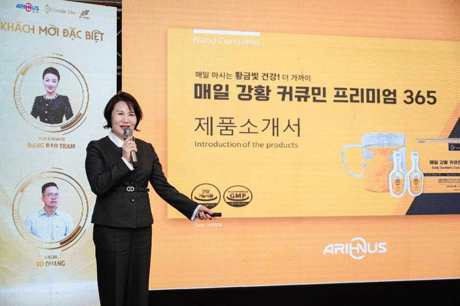 Ở góc độ công nghệ, bà Lee Jung OK, Giám đốc Nhà máy Arihnus, đã giới thiệu công nghệ Nano Curcumin 365 Premium Hàn Quốc. Công nghệ nano được đánh giá là giải pháp giúp cải thiện khả năng hấp thu Curcumin, từ đó tối ưu hiệu quả sử dụng trong các sản phẩm chăm sóc sức khỏe và sắc đẹp.