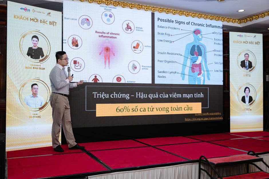 Mở đầu hội thảo, Thạc sĩ, Bác sĩ Từ Quang đã trình bày tham luận xoay quanh tác dụng chống oxy hóa và chống viêm của Curcumin. Theo ông, nhiều bệnh lý phổ biến trong xã hội hiện đại có liên quan đến các phản ứng viêm kéo dài và quá trình oxy hóa diễn ra âm thầm trong cơ thể.